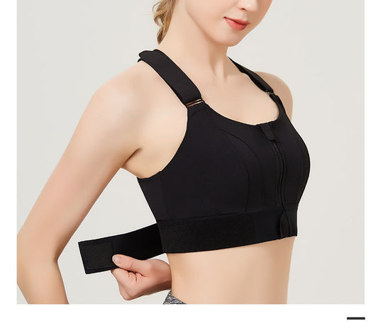 Women's Padded sports bra with front zipper and velcro size adjustable strap