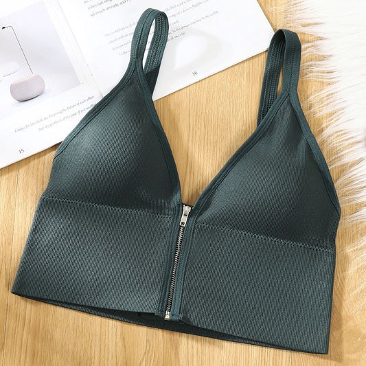 Deep V Front Zipper Beauty Back Sports Vest Bra - Yoga Wear