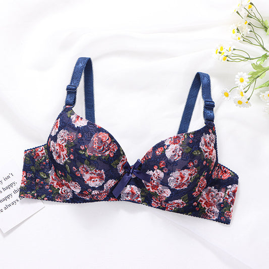 Padded Thin Cup Cotton Wirefree Push-Up Bra - Embroidery