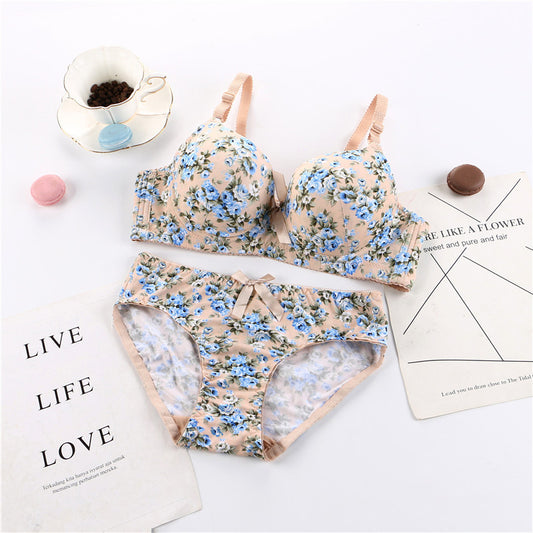 Elegant Floral Print Wired Bra & Panty Set - Breathable